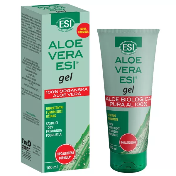 Esi Aloe Vera hranjivi gel dobiven je hladnim prešanjem unutarnjeg dijela lista prave aloje (Aloe barbadensis Miller), a posebno je prikladan za suhu, osjetljivu i iritiranu kožu zbog svog smirujućeg djelovanja. Formula je bez parabena, mirisa, SLS-a i SLES-a. Pogodna je za korištenje kod odraslih, djece i dojenčadi te osoba koje su sklone preosjetljivosti kože na određene sastojke u kozmetičkim proizvodima. Svojim hidratantnim i hranjivim sastojcima, gel od prave aloje, njeguje i smiruje kožu, osobito onu nadraženu kozmetičkim tretmanima. Zbog protuupalnog djelovanja aloje, blagotvorno djeluje na kožu s opeklinama od sunca. Potiče obnovu tkiva kože i brže zacjeljivanje manjih ozljeda, uboda insekata te ogrebotina, smanjuje strije i ožiljke a pogodan je i za njegu kože kod dugotrajnog mirovanja i pelenskog osipa.