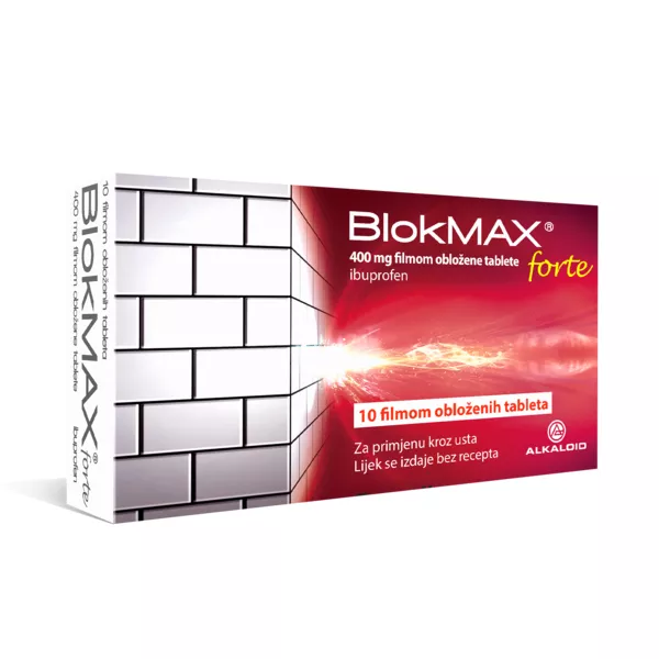 Osobama s osjetljivim želucem preporučuje se uzimanje lijeka BlokMAX forte s hranom. Najnižu učinkovitu dozu potrebno je primjenjivati tijekom najkraćeg razdoblja potrebnog za ublažavanje simptoma. Ako imate infekciju, odmah se obratite liječniku ako simptomi (kao što su vrućica i bol) ustraju ili se pogoršaju (vidjeti dio 2.). Za odrasle i adolescente u dobi od 12 godina i starije preporuča se uzeti 1 tabletu (400 mg ibuprofena) s vodom. Tabletu uzmite prema potrebi, do najviše tri puta na dan. Razdoblje između doza treba biti 4 – 6 sati. Nemojte uzeti više od 1 tablete (400 mg ibuprofena) odjednom. Nemojte uzeti više od 3 tablete (1200 mg ibuprofena) tijekom 24 sata. Razdjelni urez služi samo da Vam pomogne prelomiti tabletu ako je ne možete progutati cijelu Nemojte davati djeci mlađoj od 12 godina.
