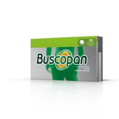 Buscopan sadrži hioscinijev butilbromid koji je polusintetski alkaloid beladone iz skupine kvarternih amonijevih spojeva. Ima spazmolitičko djelovanje (uklanja grčeve) na glatkom mišićju probavnog sustava, žučnih puteva i urogenitalnog trakta. Buscopan se primjenjuje u slučaju grčeva u probavnom sustavu i urogenitalnom traktu, te grčeva i otežane pokretljivosti žučnih puteva.