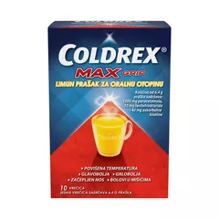 Coldrex MaxGrip Limun prašak za oralnu otopinu je namijenjen za kratkotrajno ublažavanje simptoma prehlade i gripe uključujući glavobolju, grlobolju, kongestiju nosa, sinusitis i pridruženu bol, bolove u mišićima te vrućicu