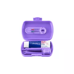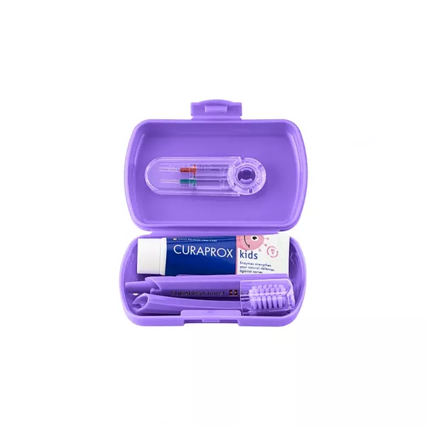 Curaprox Kids Putni Set za zdrav i blistav osmijeh vašeg mališana. Ovaj praktičan set sadrži sve što je potrebno za kvalitetnu oralnu higijenu: putnu četkicu za zube s 5 500 ultra mekanih Curen® vlakana, malu putnu pastu za zube s fluoridima (10 ml i s okusom mentola) i dvije veličine međuzubnih četkica CPS prime (CPS 06 i 07). Posebno je dizajniran za djecu od 6 do 12 godina i s mogućnošću refilla kako bi svaka tri mjeseca ili prema potrebi zamijenili glavu četkice, pastu za zube ili međuzubne četkice. Veseli dizajn nudi personalizaciju seta uz priložene zabavne naljepnice. Savršen za obiteljske odmore, školske praznike, druženja s prijateljima, kao i svakodnevnu upotrebu. Curaprox Kids putni set za 100% čiste zube, čak i u pokretu. Proizveden u Švicarskoj, vrhunske Curaprox kvalitete, za mlade istraživače pruža najbolje praktično rješenje do zdravog i blistavog osmijeha. Što sadrži Kids Putni Set? 1x sklopiva dječja četkica za zube 1x dječja pasta za zube od 10 ml s okusom blagog mentola Duo držač s međuzubnim četkicama u veličinama 06 i 07 zabavne naljepnice za jedinstvenu personalizaciju svakog putnog seta Čisti međuzubni prostori iznimno su važni za oralno zdravlje, kako odraslih, tako i djece. Međuzubne četkice mogu se svakodnevno koristiti već od 6. godine. Preporučujemo da roditelji čiste zube djeci u dobi od 6 do 10 godina. Za stariju djecu preporučujemo i nadalje roditeljski nadzor kako bi usvojili pravilnu tehniku četkanja i održavali kvalitetnu oralnu higijenu u budućnosti. Djeci koja do sada još nisu koristila međuzubnu četkicu u početku će zasigurno krvariti desni. To nije razlog za brigu nego znak da postoji upala desni koju je moguće umanjiti svakodnevnom i pravilnom upotrebom međuzubnih četkica. Dovoljno je očistiti svaki međuzubni prostor jednom na dan, jednom unutra i van - gotovo! U većini slučajeva uočljivo je značajno poboljšanje i smanjenje krvarenja unutar 3 do 7 dana redovite upotrebe. Malen i praktičan set za savršenu oralnu higijenu dječjih zuba, svakog dana i bilo gdje.