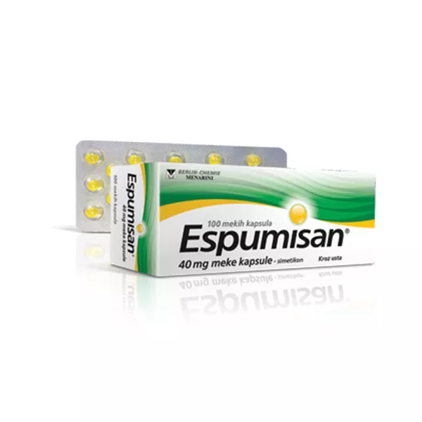 Espumisan 40 mg meke kapsule sadrže djelatnu tvar simetikon koja pripada skupini lijekova koji se nazivaju lijekovi za funkcionalne crijevne poremećaje poput grčeva koji mogu nastati ako je previše zraka i plinova zatvoreno u želucu ili crijevima. Djelatna tvar simetikon ne utječe na rad želuca i crijeva te dovodi do oslobađanja plinova iz crijeva koji se zatim uklanjaju prirodnim putem ili ih crijevna stijenka može apsorbirati.