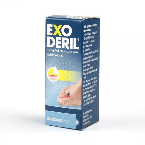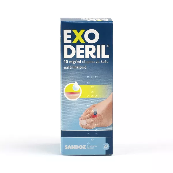 Exoderil otopina za kožu sadrži djelatnu tvar naftifinklorid, a namijenjena je za liječenje gljivičnih infekcija na koži. Exoderil otopina za kožu djeluje na kožne gljivice, kvasnice, plijesni i druge gljivice. Exoderil otopina za kožu koristi se za liječenje gljivičnih infekcija kože stopala.