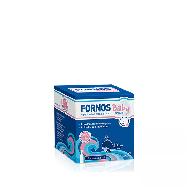 FORNOS Baby ampule su namijenjene za inhalacijsku terapiju te pružaju brzu i optimalnu učinkovitost na donje dišne puteve uz dobru podnošljivost osjetljive sluznice. Smanjuju edem sluznice i olakšavaju disanje, odčepljuju nos, razjeđuju sluz i olakšavaju izbacivanje iz dišnih puteva, sprječavaju infekcije donjih dišnih puteva i ORL komplikacije. Pogodo za bebe od najranije dobi i za cijelu obitelj. Sigurno za dugotrajnu i čestu upotrebu, bez rizika od iritacije.