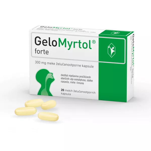 GeloMyrtol Forte je biljni lijek koji olakšava simptome akutnog i kroničnog sinusitisa i bronhitisa - olakšava izbacivanje guste sluzi dok istovremeno smanjuje broj napadaja kašlja i smanjuje bol u sinusima.