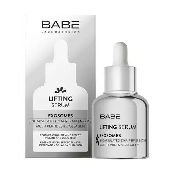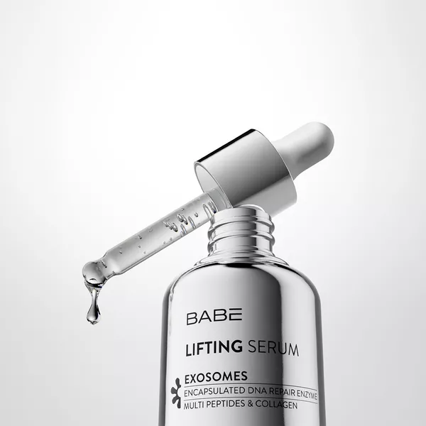 Prikladan je za sve tipove kože, uključujući osjetljivu i senzibiliziranu kožu. Napredna formula s visokopreciznim biotehnološkim aktivnim sastojcima, poput egzosoma, inkapsuliranih enzima, peptida i aminokiselina kolagena, koji djeluju sinergijski za naprednu regeneraciju stanica. Sveobuhvatan tretman koji obnavlja strukturu kože, povećava gustoću, učvršćuje i redefinira konture lica. Ukupni učinak učvršćivanja i podizanja kože, Smanjuje dubinu bora (gornji, srednji i donji dio lica te vrat), Učinak zgušnjavanja i anti‑gravitacijski učinak, Redefinira oval lica Intenzivna stanična regeneracija, Sprječava i ublažava znakove starenja, Potiče proizvodnju kolagena i elastina, Vidljivo poboljšava teksturu i elastičnost kože. Babéov Lifting Serum formuliran je biotehnologijom koja djeluje na staničnoj razini kako bi pružio vidljive, trenutne i dugotrajne rezultate. Kliničke studije potvrđuju da smanjuje dubinu bora, poboljšava čvrstoću i elastičnost kože te redefinira konture lica u roku od 8 tjedana. Ovo napredno dermokozmetičko rješenje precizno cilja sva tri dijela lica — gornji, srednji i donji — s dokazanim rezultatima u svakom području. Smanjuje bore na čelu, bore oko očiju i nazolabijalne brazde. Rezultat je sveobuhvatno i vidljivo poboljšanje cijelog lica i vrata. Ovaj visokoučinkoviti serum optimizira kožu biotehnološkim aktivnim sastojcima poput egzosoma, inkapsuliranih enzima za popravak DNA, multipetida i aminokiselina kolagena za dubinski stanični popravak, efekt zgušnjavanja i učvršćivanja. Regenerira, potiče sintezu kolagena i elastina te vidljivo poboljšava teksturu kože već od prve primjene. Osim toga, njegova ugodna tekstura lako se razmazuje i brzo upija, što ga čini savršenim dodatkom tvojoj svakodnevnoj rutini. Indiciran je za prevenciju i ublažavanje znakova starenja, ciljajući sve tipove bora. Posebno se preporučuje koži s vidljivim gubitkom čvrstoće i elastičnosti te izraženim borama u gornjem i donjem dijelu lica.