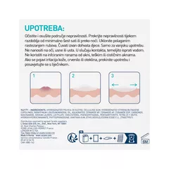 Očistite i osušite područje nepravilnosti. Prekrijte nepravilnosti tijekom razdoblja od minimalno šest sati ili preko noći. Uklonite polaganim rastezanjem rubova. Čuvati izvan dohvata djece. Samo za vanjsku upotrebu. Ne nanositi na oči, usne ili usta. U slučaju kontakta, temeljito isprati vodom. Ne koristiti na inficiranim ranama od akni, teškim ili cističnim aknama. Ako se pojavi iritacija kože, crvenilo ili oteklina, prekinite upotrebu i posavjetujte se s liječnikom.