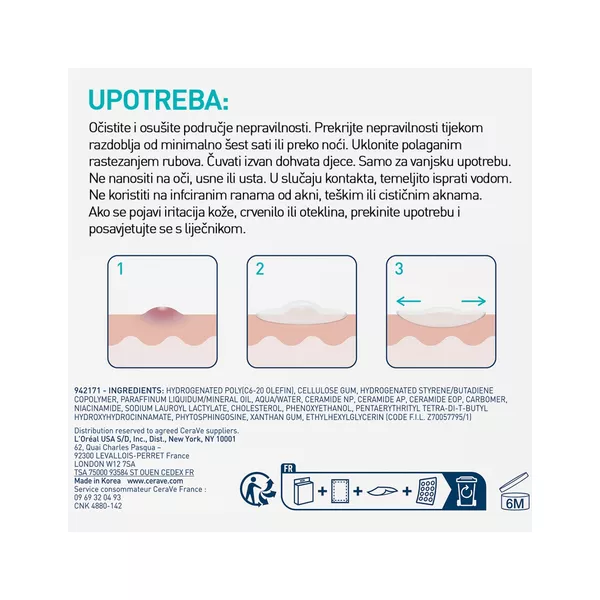 CeraVe flasteri protiv nepravilnosti idealni su za osjetljivu kožu. Obogaćeni su s 3 esencijalna ceramida i niacinamidom, pa pomažu u jačanju i zaštiti kožne barijere. Nježni su prema koži, hipoalergeni i nekomedogeni, što znači da ne začepljuju pore. Već nakon prve primjene vidljivo smanjuju pojavu nepravilnosti i crvenila, upijaju višak masnoće te pomažu spriječiti čeprkanje, čime smanjuju rizik od nastanka ožiljaka povezanih s nepravilnostima.