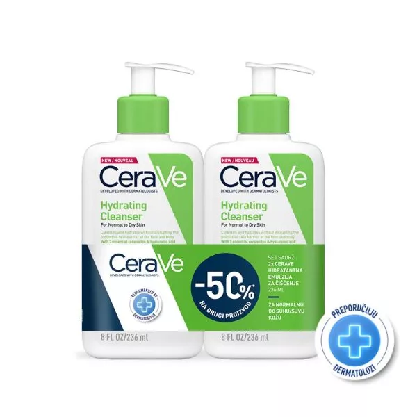CeraVe Hidratantna emulzija za čišćenje lica za normalnu do suhu kožu 236ml, Duo pack