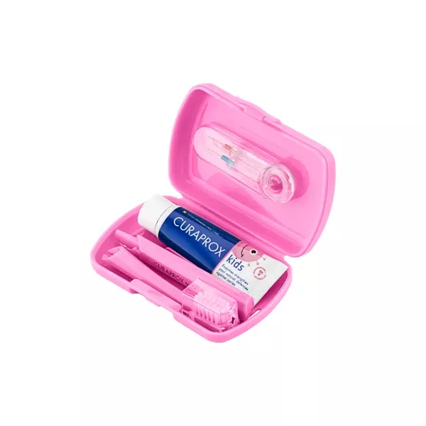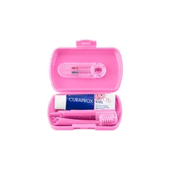 Curaprox Kids Putni Set za zdrav i blistav osmijeh vašeg mališana. Ovaj praktičan set sadrži sve što je potrebno za kvalitetnu oralnu higijenu: putnu četkicu za zube s 5 500 ultra mekanih Curen® vlakana, malu putnu pastu za zube s fluoridima (10 ml i s okusom mentola) i dvije veličine međuzubnih četkica CPS prime (CPS 06 i 07). Posebno je dizajniran za djecu od 6 do 12 godina i s mogućnošću refilla kako bi svaka tri mjeseca ili prema potrebi zamijenili glavu četkice, pastu za zube ili međuzubne četkice. Veseli dizajn nudi personalizaciju seta uz priložene zabavne naljepnice. Savršen za obiteljske odmore, školske praznike, druženja s prijateljima, kao i svakodnevnu upotrebu. Curaprox Kids putni set za 100% čiste zube, čak i u pokretu. Proizveden u Švicarskoj, vrhunske Curaprox kvalitete, za mlade istraživače pruža najbolje praktično rješenje do zdravog i blistavog osmijeha. Što sadrži Kids Putni Set? 1x sklopiva dječja četkica za zube 1x dječja pasta za zube od 10 ml s okusom blagog mentola Duo držač s međuzubnim četkicama u veličinama 06 i 07 zabavne naljepnice za jedinstvenu personalizaciju svakog putnog seta Čisti međuzubni prostori iznimno su važni za oralno zdravlje, kako odraslih, tako i djece. Međuzubne četkice mogu se svakodnevno koristiti već od 6. godine. Preporučujemo da roditelji čiste zube djeci u dobi od 6 do 10 godina. Za stariju djecu preporučujemo i nadalje roditeljski nadzor kako bi usvojili pravilnu tehniku četkanja i održavali kvalitetnu oralnu higijenu u budućnosti. Djeci koja do sada još nisu koristila međuzubnu četkicu u početku će zasigurno krvariti desni. To nije razlog za brigu nego znak da postoji upala desni koju je moguće umanjiti svakodnevnom i pravilnom upotrebom međuzubnih četkica. Dovoljno je očistiti svaki međuzubni prostor jednom na dan, jednom unutra i van - gotovo! U većini slučajeva uočljivo je značajno poboljšanje i smanjenje krvarenja unutar 3 do 7 dana redovite upotrebe. Malen i praktičan set za savršenu oralnu higijenu dječjih zuba, svakog dana i bilo gdje.
