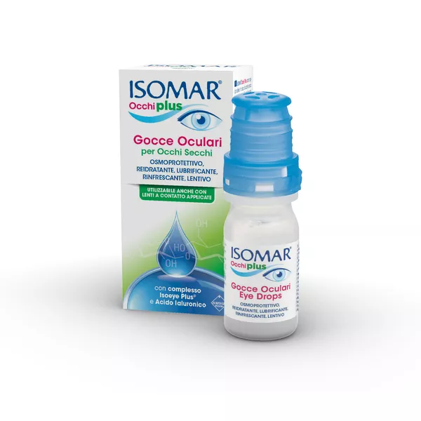 ISOMAR Oči Plus inovativna formula pomaže u ublažavanju simptoma suhih očiju na 5 različitih načina: 1. Osmoprotektivno: jedan od glavnih uzroka suhoće očiju je smanjeno ili nepravilno izlučivanje suza zbog promjene prirodne osmotske ravnoteže stanica. ISOMAR Oči Plus sadrži inovativni Isoeye Plus complex koji pruža osmoprotektivno djelovanje, hidrira i štiti epitelne stanice rožnice protiv potencijalnog oštećenja stanica uzrokovanog hiperosmolarnošću. 2. Hidrira: hipotonična morska voda stimulira bolju osmotsku apsorpciju za bolju hidrataciju oka. 3. Lubrikacija: hijaluronska kiselina i hipromeloza lubriciraju površinu oka, usporavaju isparavanje suznog filma. 4. i 5. Osvježava i umiruje: formula je dopunjena s ekstraktima različka, nevena, eufrazije i primorske cinerarije s efektom osvježavanja i umirivanja crvenih i iritiranih očiju. ISOMAR Oči Plus pruža brzo olakšanje od crvenila, iritacije, peckanja, svrbeža i osjećaja stranog tijela u oku, kao i od suzenja i umora uzrokovanih čimbenicima kao što su izloženost vjetru i suncu, prašina, pelud, smog, dim, suha toplina, klimatizacija, dugotrajan rad ispred ekrana i korištenje kontaktnih leća. ISOMAR Oči Plus može se koristiti uz bilo koju vrstu kontaktnih leća. Korištenje ISOMAR Oči Plus prije primjene kontaktnih leća preporučuje se za bolju lubrikaciju i umirujuće djelovanje.