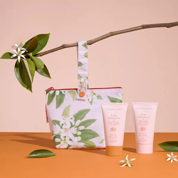 Pjena za kupanje i fluidna krema za tijelo, putna veličina. Limitirano izdanje s torbicom. Pjena za kupanje i mirisna krema za tijelo u putnom formatu dolaze u torbici s prekrasnim narančinim cvjetovima: savršen poklon za one koji vole putovati i uvijek imati sa sobom osnovne proizvode za njegu tijela s cvjetnim i citrusnim mirisom. Beauty torbica Fiori d’Arancio sadrži: - Pjena za kupanje Fiori d’Arancio 75 ml - Tekuća krema za tijelo Fiori d’Arancio 75 ml