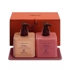 Zaronite u svijet opuštajuće i luksuzne njege s Tea Garden Beauty Boxom, savršenim za ljubitelje elegancije i vrhunskih proizvoda. Ovaj limitirani set sadrži Gel za čišćenje lica i ruku (270 ml), koji nježno čisti i revitalizira kožu, te Kremu za ruke i tijelo (250 ml), koja pruža bogatu hidrataciju i mekoću, zahvaljujući blagotvornim sastojcima crnog čaja Darjeeling, vanilije i kardamoma. Ono što ovaj set čini posebnim je prekrasna kutija od tkanine, koja će unijeti dašak luksuza u vašu kupaonicu, i elegantni metalni pladanj koji pruža savršen dodatak svakom prostoru. Ograničeno izdanje Tea Garden Beauty Boxa idealno je kao poklon za sebe ili dragu osobu, pružajući svakodnevni ritual njege uz profinjene mirisne note.