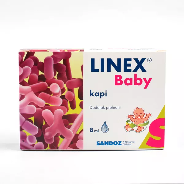 Dnevna doza Linex Baby oralnih kapi sadrži 1 x 109 jedinica bakterija koje tvore kolonije (CFUs), vrste Bifidobacterium animalis subsp. lactis, BB-12®. Bifidobakterije su značajne jer su jedne od prvih mikroorganizama koji nastanjuju probavni sustav novorođenčadi. Kliničkim ispitivanjim dokazano je da soj bifidobakterija BB-12® može imati utjecaj na ukupan stadržaj bifidobakterija u stolici, zdravlje probavnog sustava i imunitet.
