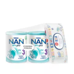 NAN® OPTIPRO® 3 HMO je mlijeko namjenjeno maloj djeci od 1 godine nadalje, kao tekući dio prehrane, razvijeno na osnovi Nestlé-ovih istraživanja iz područja prehrane i zdravlja djece. Sadrži jedinstvenu kombinaciju sastojaka: OPTIPRO®: Optimizirane bjelančevine sukladno dobi djeteta, kako u kvalitativnom tako i u kvantitativnom pogledu. 2 FL' je oligosaharid strukutrno identičan oligosaharidu koji se može pronaći u majčinom mlijeku, L. reuteri : sličan soj može biti prisutan u crijevnoj flori dojene djece, Vitamin D pridonosi normalnoj funkciji imunološkog sustava djece. Kalcij je potreban za normalan rast i razvoj dječjih kostiju. Željezo je potrebno za normalan kognitivni razvoj djece. Raznovrsna i uravnotežena prehrana i zdrav način života su važni za zdravlje vašeg djeteta. Upitajte svog liječnika specijalistu o mlijeku za malu djecu NAN® OPTIPRO® 3 HMO. NAN OPTIPRO® 3 HM-O je mliječni pripravak namijenjen maloj djeci uzrasta od navršene 1 godine, kao tekući dio prehrane. S dodatkom kulture Lactobacillus reuteri. NAN OPTIPRO 3 nije zamjena za mlijeko, već mlijeko namenjeno prehrani zdrave male djece od 12 mjeseci nadalje. Sa dojenjem je potrebno nastaviti što je dulje moguće.