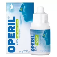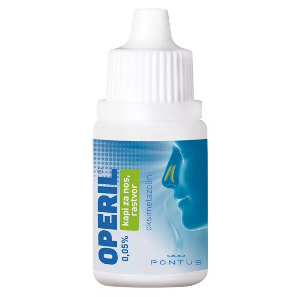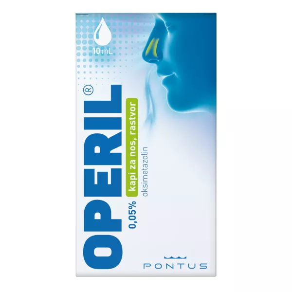 Operil 0,5 mg/ml kapi za nos, otopina sadrže djelatnu tvar oksimetazolinklorid i namijenjene su samo za primjenu u nos. Oksimetazolinklorid sužava krvne žile u nosu i time smanjuje otečenost sluznice i simptome začepljenog nosa. Operil se upotrebljava u odraslih i djece starije od 7 godina za ublažavanje začepljenosti nosa kod: - upale nosne sluznice uzrokovane prehladom (akutni rinitis) - peludne hunjavice (alergijski rinitis) - upale sluznice nosnih šupljina i došupljina (nazalnih i paranazalnih sinusa) - upale srednjeg uha (otitis media) za poboljšanje prohodnosti Eustahijeve tube. Ovaj lijek se može primijeniti za smanjenje otoka sluznice nosa tijekom endoskopskog kirurškog zahvata.