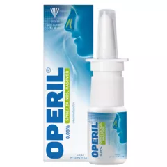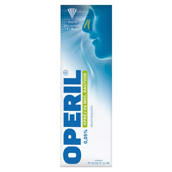 Operil 0,5 mg/ml sprej za nos, otopina sadrži djelatnu tvar oksimetazolinklorid i namjenjena je samo za primjenu u nos. Oksimetazolinklorid sužava krvne žile u nosu i time smanjuje otečenost sluznice i simptome začepljenog nosa. Operil se upotrebljava kod odraslih i djece starije od 7 godina za ublažavanje začepljenosti nosa kod: - upale nosne sluznice uzrokovane prehladom (akutni rinitis) - peludne hunjavice (alergijski rinitis) - upale sluznice nosnih šupljina i došupljina (nazalnih i paranazalnih sinusa) - upale srednjeg uha (otitis media) za poboljšanje prohodnosti Eustahijeve tube. Ovaj lijek se može primijeniti za smanjenje otoka sluznice nosa tijekom endoskopskog kirurškog zahvata.