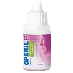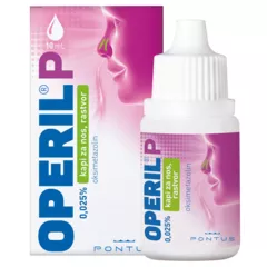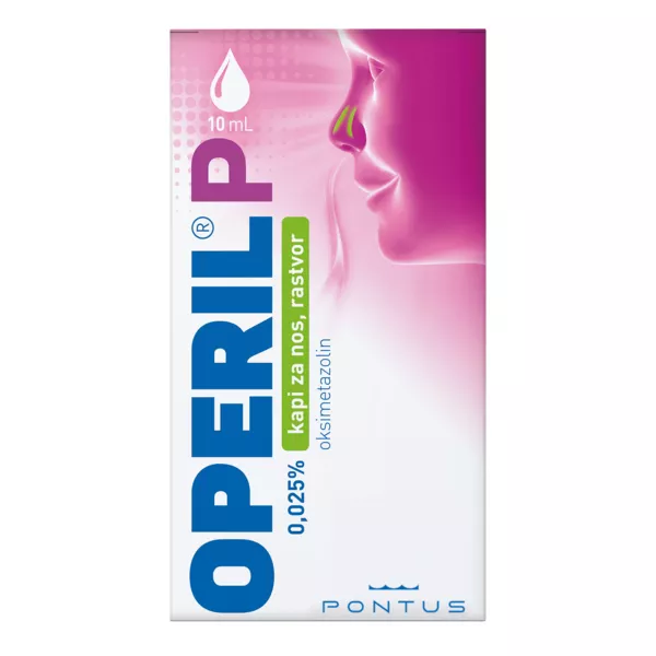 Operil P 0,25 mg/ml kapi za nos, otopina sadrže djelatnu tvar oksimetazolinklorid i namijenjene su samo za primjenu u nos. Oksimetazolinklorid sužava krvne žile u nosu i time smanjuje otečenost sluznice i simptome začepljenog nosa. Operil P se upotrebljava u djece od 2 do 7 godina za ublažavanje začepljenosti nosa kod: - upale nosne sluznice uzrokovane prehladom (akutni rinitis) - peludne hunjavice (alergijski rinitis) - upale sluznice nosnih šupljina i došupljina (nazalnih i paranazalnih sinusa) - upale srednjeg uha (otitis media) za poboljšanje prohodnosti Eustahijeve tube. Ovaj lijek se može primijeniti za smanjenje otoka sluznice nosa tijekom endoskopskog kirurškog zahvata