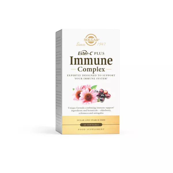 Stručno osmišljen za potporu imunitetu. Jedinstvena formulacija koja kombinira sastojke za potporu imunosnog sustava i ljekovite biljke — plod crne bazge (Sambucus nigra), grimiznu ehinaceju (Echinacea purpurea) i kozlinac (Astragalus membranaceus). Sadržava sedam znanstveno ispitanih nutrijenata koji pridonose normalnoj funkciji imunosnog sustava — vitamine A, C, B6, B12, D, folat te cink. Vitamin C dolazi u obliku patentiranog Estera-C® — jedinstvenog, nekiselog oblika vitamina C koji je nježan za želudac. Meke želatinozne kapsule jednostavne su za konzumaciju i gutanje. Proizvod ne sadržava gluten, pšenicu, mliječne proizvode, soju, kvasac, konzervanse, umjetne arome i zaslađivače.
