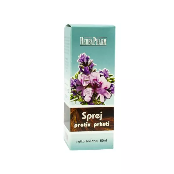 Sprej protiv prhuti potpuno je prirodan domaći proizvod, bez dodataka konzervansa i štetnih spojeva. Na bazi je eteričnih ulja lavandina, geranija, palmarose kao i hidrolata lavande. Proizvod se nanosi prema potrebi, jedan put dnevno i nije ga potrebno ispirati. Namijenjen je za uporabu kod svih tipova kose. Ne masti kosu.