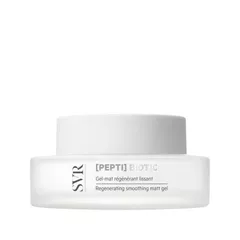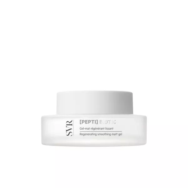 SVR Pepti biotic mat gel sadrži peptide koji djeluju na pore, nesavršenosti i bore na osjetljivoj koži. Rezultat je obnovljena i zaglađena koža lica. Biotic mat gel sadrži tri aktivne tvari ključne za zdravlje kože kombinirane za pomlađivanje kože Pasterizirani probiotik Stabilizirani vitamin C Hijaluronska kiselina Ovaj regenerativni gel sadrži peptide za matiranje kože i zaglađivanje linija i bora. Koža svakim danom postaje glatkija, zaglađenija i čvršća. Blagi, neljepljivi matirajući gel zaglađuje teksturu kože. Rezultat je koža koja je uravnotežena i regenerirana, pomlađena te osjetno glađa i čvršća. Gel zaglađuje sitne linije i bore te vraća mat izgled koži. Formula se isporučuje u staklenoj posudi i sastoji se od 92% sastojaka prirodnog podrijetla. Pakiranje ga čini jednostavnim za recikliranje i korištenje. Gel je Nekomedogen. Testirano pod dermatološkim nadzorom, na 100% ispitanika s osjetljivom kožom.