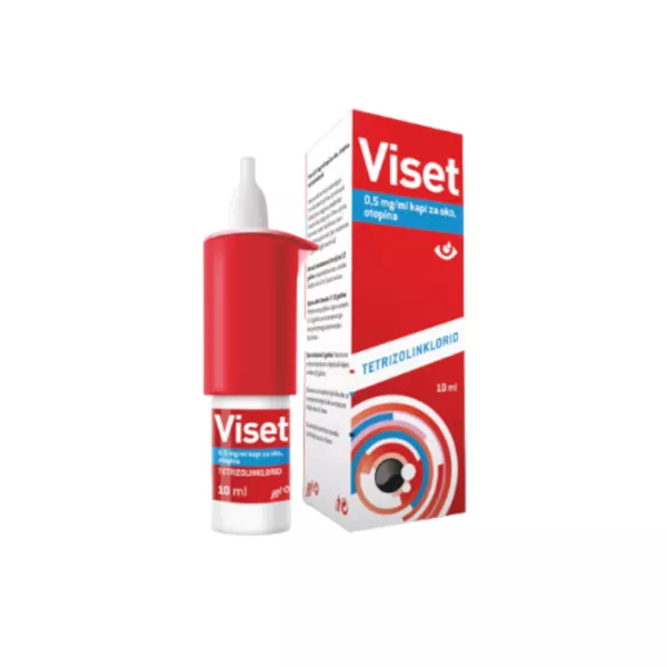 Viset sadrži djelatnu tvar tetrizolinklorid koji spada u skupinu lijekova koji sužavaju krvne žile u oku. Ovaj lijek se koristi kod nadražaja i crvenila oka koji nisu uzrokovani infekcijom, nego su posljedica iritacije oka zbog npr. dima, vjetra, klorirane vode i svjetlosti, kao i alergijske upale oka (npr. sezonska alergija, alergija na pelud). Lokalna primjena ovog lijeka na spojnicu (konjunktivu) oka u nekoliko minuta dovodi do suženja krvnih kapilara (vazokonstrikcije) u trajanju od 4 do 8 sati. Ovaj lijek se smije koristiti samo za blage nadražaje oka. Nadražaj ili crvenilo oka često mogu biti znakovi ozbiljne bolesti oka (pogledajte dio 2. Što morate znati prije nego počnete primjenjivati Viset) te se u slučaju sumnje obratite svom liječniku prije primjene ovog lijeka. Obavezno se obratite liječniku ako se ne osjećate bolje ili ako se osjećate lošije nakon 2 dana.