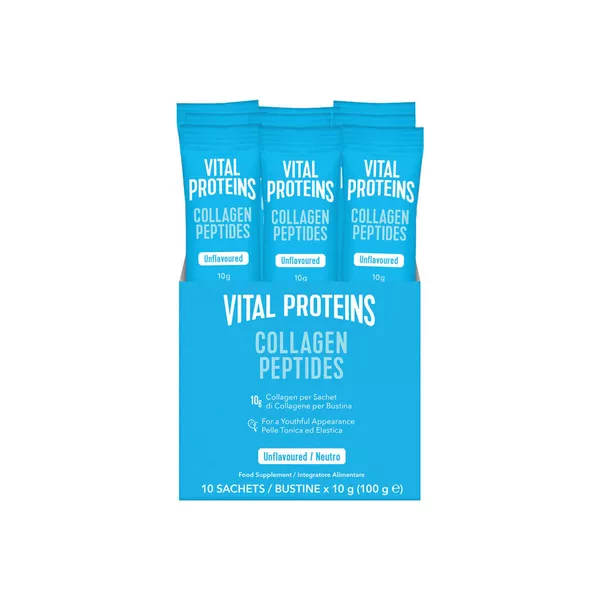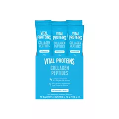 Ove praktične Vital Proteins Collagen Peptides vrećice omogućuju jednostavan, bioraspoloživ unos goveđeg kolagena u prahu bilo kada i bilo gdje, podržavajući prirodne razine kolagena u tijelu. S godinama prirodna proizvodnja kolagena u tijelu postupno opada, što je faktor koji utječe na vidljive znakove starenja i smanjenu elastičnost. Vital Proteins Kolagenski Peptidi nude jednostavno i učinkovito rješenje za podršku prirodnim razinama kolagena iznutra. Ovaj dodatak prehrani sadrži kolagenske peptide dobivene iz visokokvalitetnog goveđeg kolagena. Peptidi su mali fragmenti proteina, što im osigurava visoku bioraspoloživost – tijelo ih učinkovito apsorbira i koristi. Ono što ovaj proizvod čini savršenim za užurbani stil života jest pakiranje u praktične sašete. Svaka vrećica osigurava točno 10 g peptida, ali preporučena dnevna doza je 20 g, čime se omogućuje fleksibilnost u doziranju. Jednostavno pomiješajte prah u omiljeni topli ili hladni napitak – kavu, čaj, sok ili smoothie. Budući da ne mijenja okus, savršeno se uklapa u vaše omiljene recepte, bez dodatnog napora. Kolagen je ključni strukturni protein prisutan u vezivnom tkivu, tetivama, ligamentima i kostima. Redovitim unosom Vital Proteins Kolagenskih Peptida pomažete održati razine ovog važnog proteina, doprinoseći svojoj općoj vitalnosti i podršci mladolikog izgleda. Nema više brige o teglama i mjerenju – samo otvorite vrećicu i popijte!